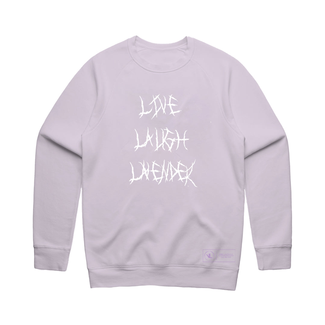 Rock out with our "Live Laugh Lavender" Crewneck Sweater, featuring a hardcore lavender design in heavy metal font. Show off your edgy and funny side with this unique twist on a cute phrase. Fun and fierce, this tee is sure to make a statement.